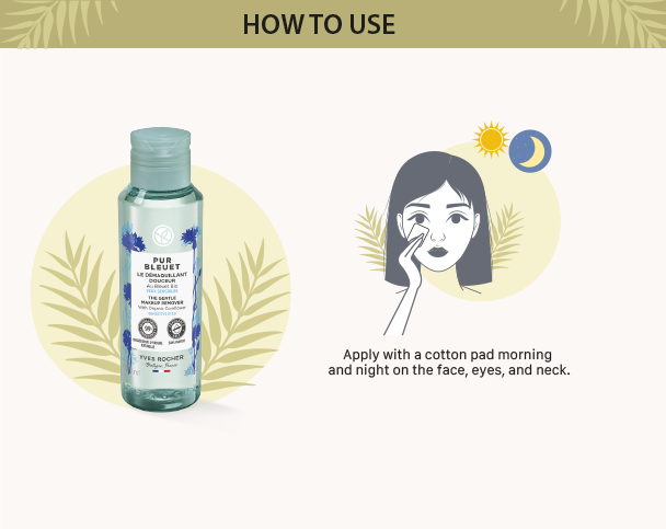 يزيل المكياج بلطف من الرموش والجفونيعمل مزيل المكياج هذا اللطيف على إزالة المكياج من الرموش والجفون ويهدئ محيط العين. مستخلص من خلاصة زهرة الذرة ذات الخصائص المهدئة التي نمت في الزراعة الإيكولوجية في حقولنا في لاغاسيلي. صنع خصيصا لمحيط العينين ولجميع أنواع البشرة. يوفر قوامه المنعش كل الراحة اللازمة عند إزالة المكياج للبشرة الحساسة