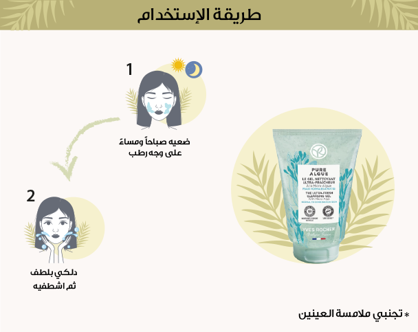 طريقة الاستخدام: ضعيه صباحًا ومساءً على وجه رطب ودلكيه بلطف واشطفيه وتجنبي ملامسة العينين
