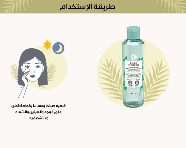 طريقة الاستخدام: ضعيه باستخدام قطعة قطن صباحًا ومساءً على الوجه والعينين والرقبة. لا حاجة للشطف