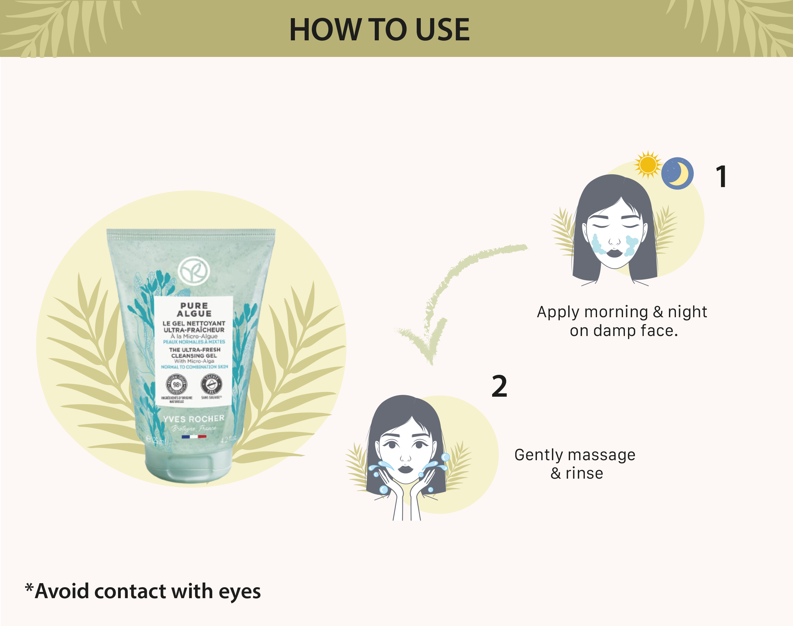 How to use: Apply morning and night on a damp face. Gently massage in and rinse. Avoid contact with eyes.